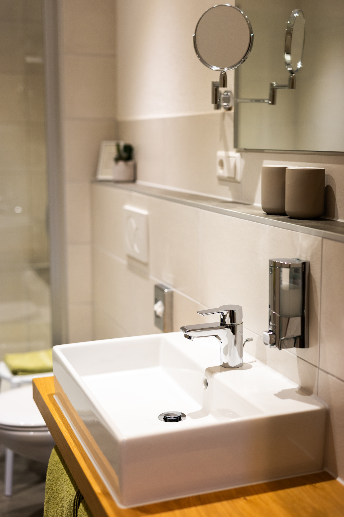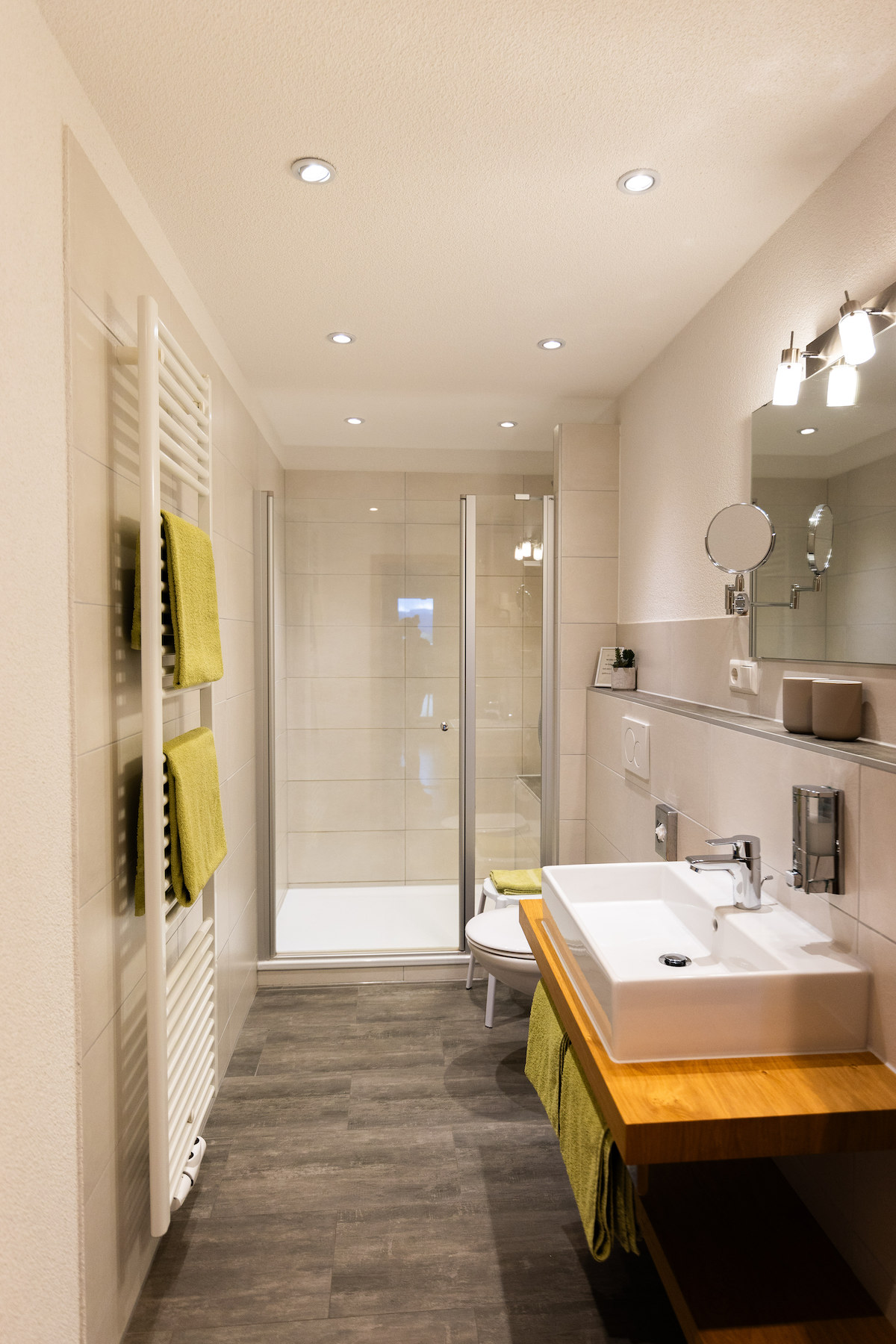 - Kosmetikspiegel, Haartrockner, Seifenspender, Badradio, Fußbodenheizung